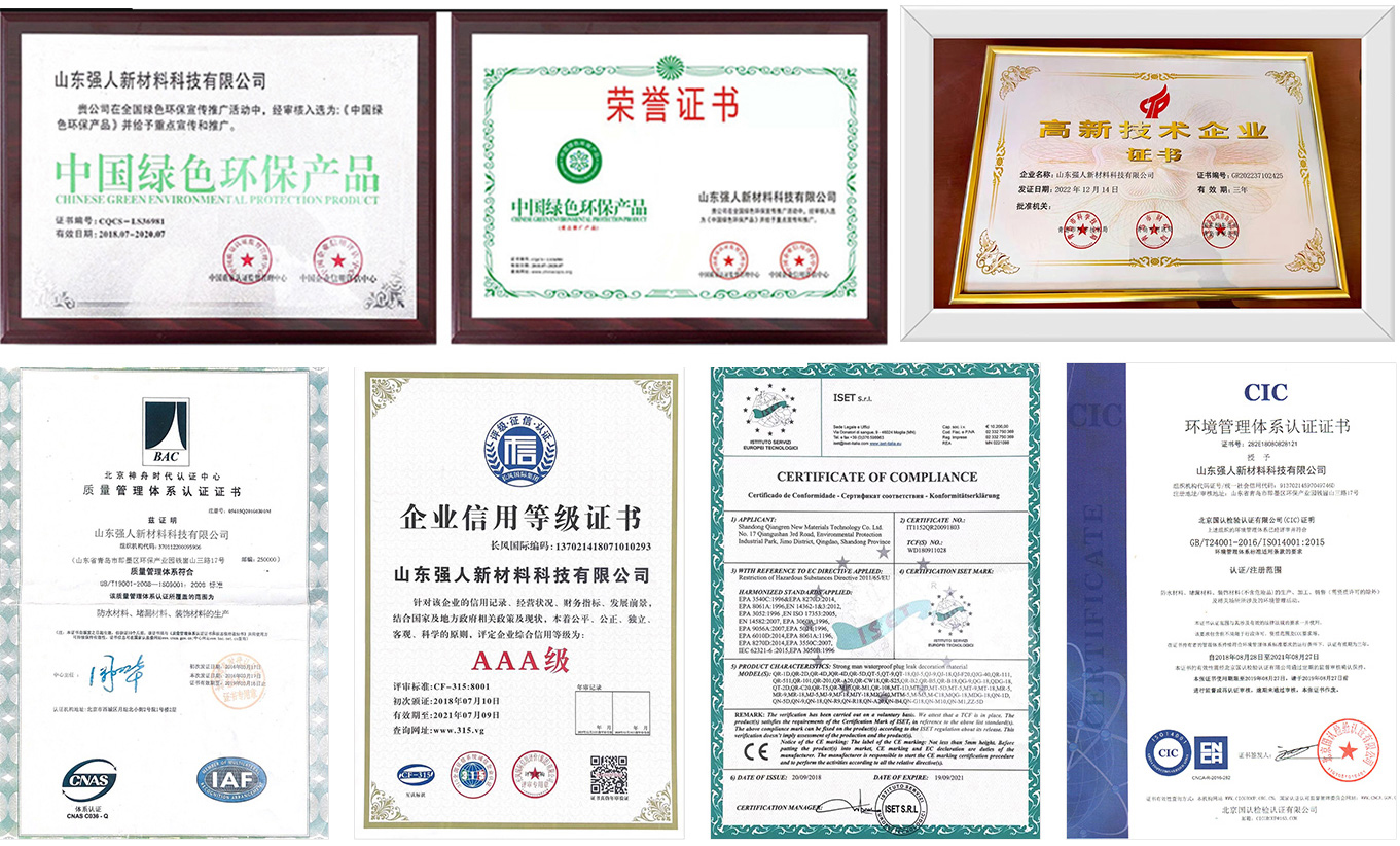 每款產(chǎn)品都有相關(guān)的施工視頻,質(zhì)量檢測報告、合格證,且符合相關(guān)標準。強人防水的產(chǎn)品都是經(jīng)過環(huán)境質(zhì)量體系認證的環(huán)保涂料。